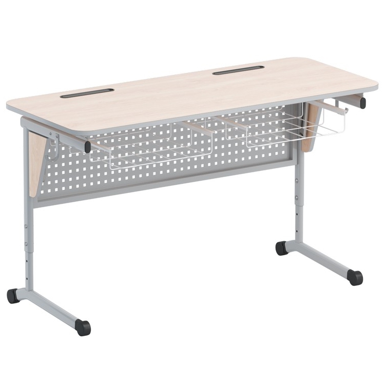 Стол ученический двухместный с перфорированной панелью, наклоном столешницы (0-24°) и корзиной - fgospostavki.ru - Тихорецк