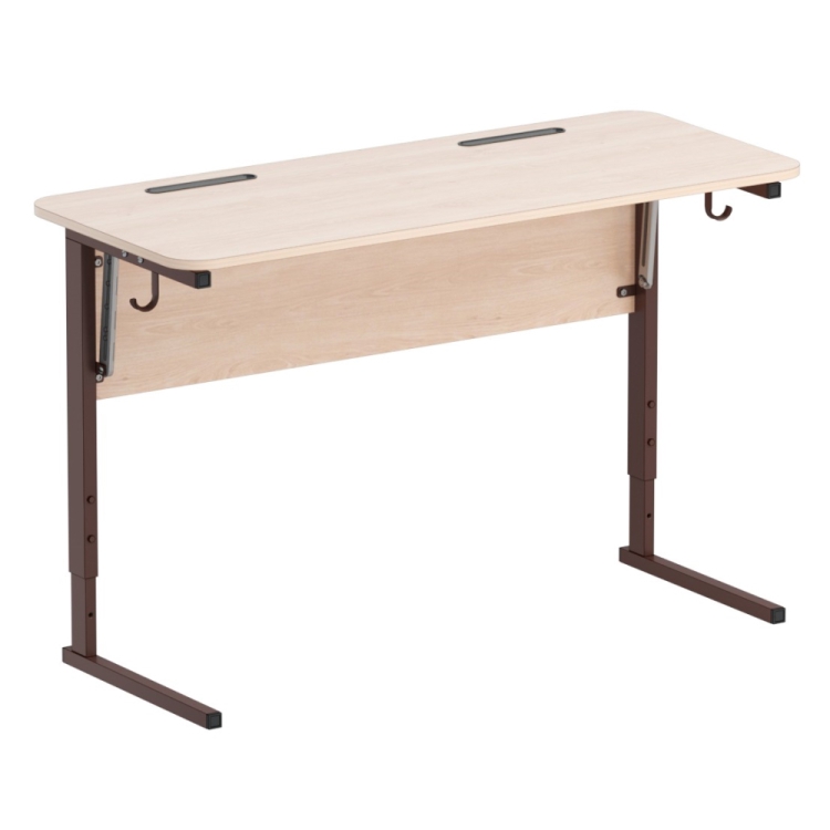 Имеется два крючка для портфелей. Каркас стола имеет полимерные подпятники, предотвращающие повреждение напольных покрытий.