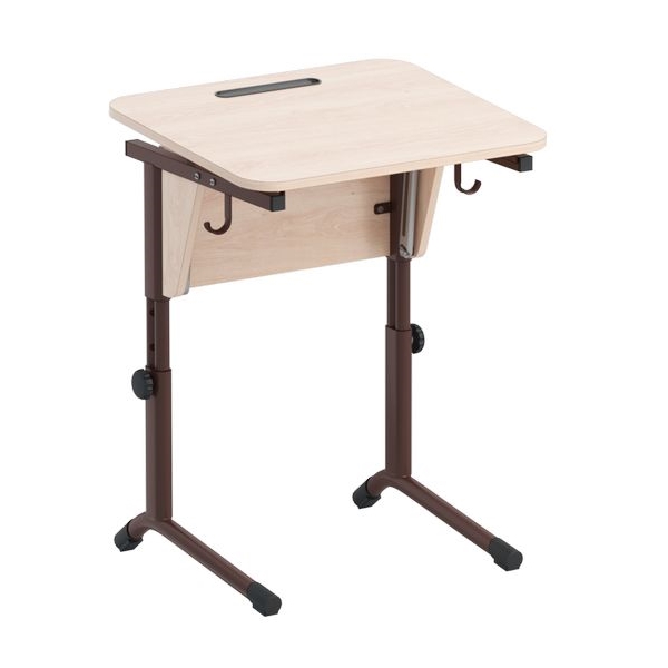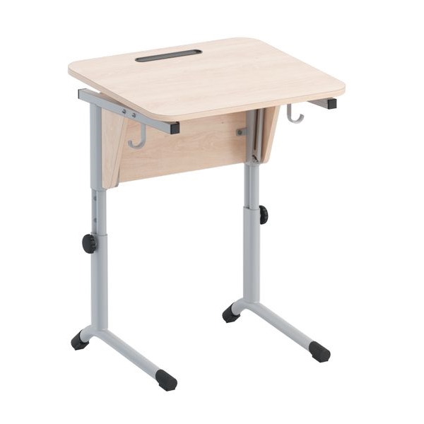 Позволяет регулировать высоту стола в зависимости от роста учащегося, а также наклон столешницы от 0 до 24 градусов путем плавной регулировки, на рабочей поверхности имеется выемка для ручек, карандашей и других принадлежностей.