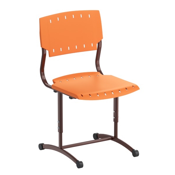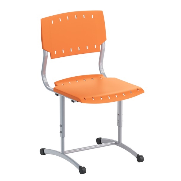 Стул ученический, регулируемый. Сиденье и спинка изготовлены из пластика методом литья. Спинка имеет изгиб в плане, все углы притуплены и имеют радиус закругления (габариты спинки 456х270 мм). Передний край сиденья имеет изгиб, все углы притуплены и имеют радиус закругления (габариты сиденья 456х410мм). Каркас стула состоит из двух подвижных опор и верхнего корпуса. Подвижные опоры выполнены сварными цельнометаллическими из плоскоовальной трубы и покрыты стойким полимерным покрытием. На свободных концах труб установлены заглушки из ударопрочных полимеров не повреждающих поверхность напольных покрытий.