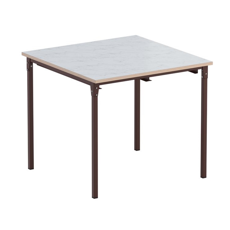 Стол изготавливается на металлическом каркасе прямоугольного сечения, покрытого стойкой к химическим и механическим воздействиям полимерно-порошковой краской, на свободных концах труб установлены заглушки из ударопрочных полимеров.