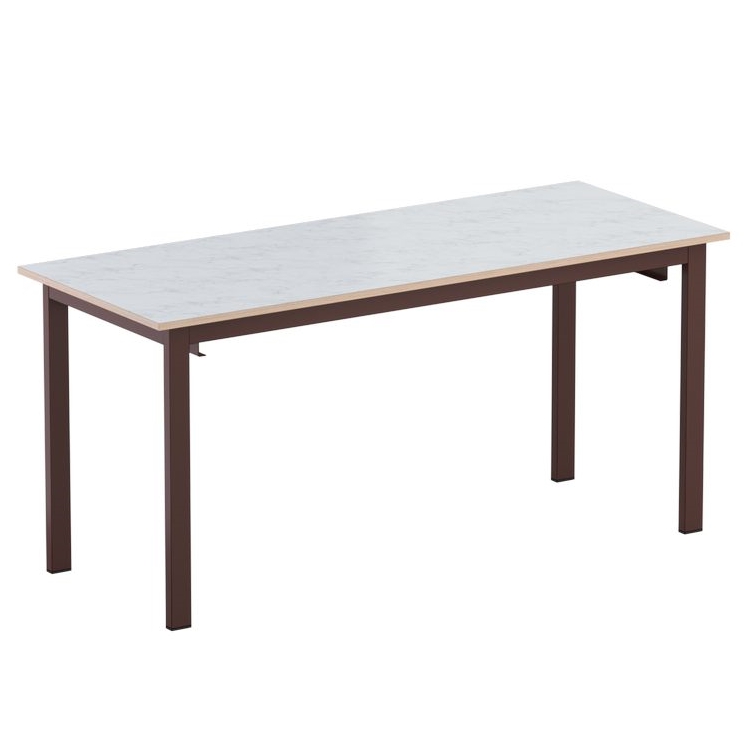 Стол изготавливается на металлическом каркасе прямоугольного сечения, покрытого стойкой к химическим и механическим воздействиям полимерно-порошковой краской, на свободных концах труб установлены заглушки из ударопрочных полимеров.