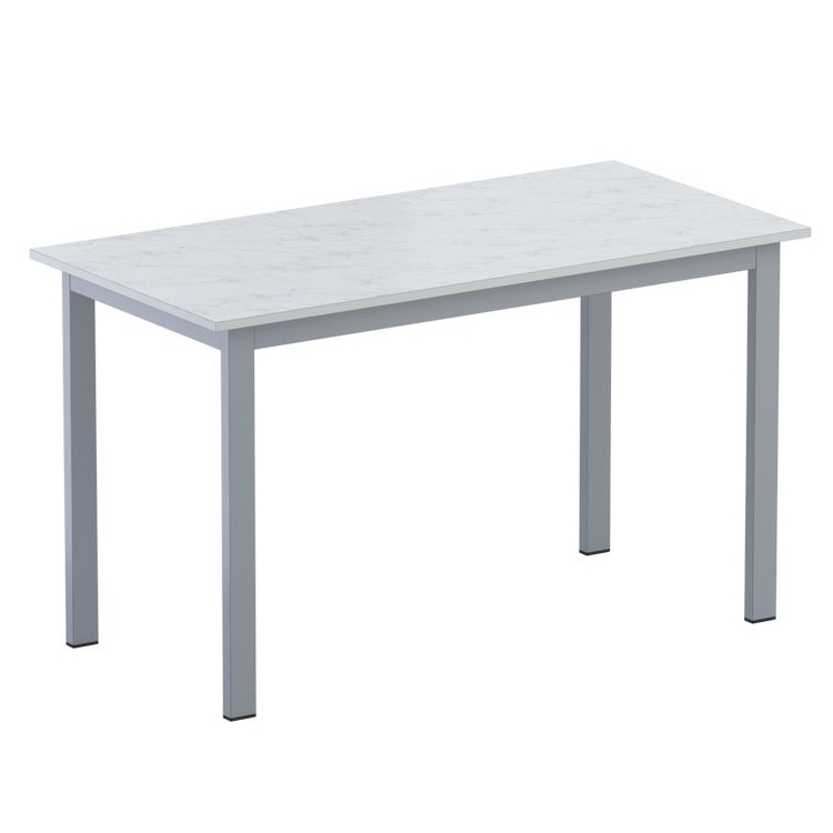 Стол изготавливается на металлическом каркасе прямоугольного сечения, покрытого стойкой к химическим и механическим воздействиям полимерно-порошковой краской, на свободных концах труб установлены заглушки из ударопрочных полимеров.