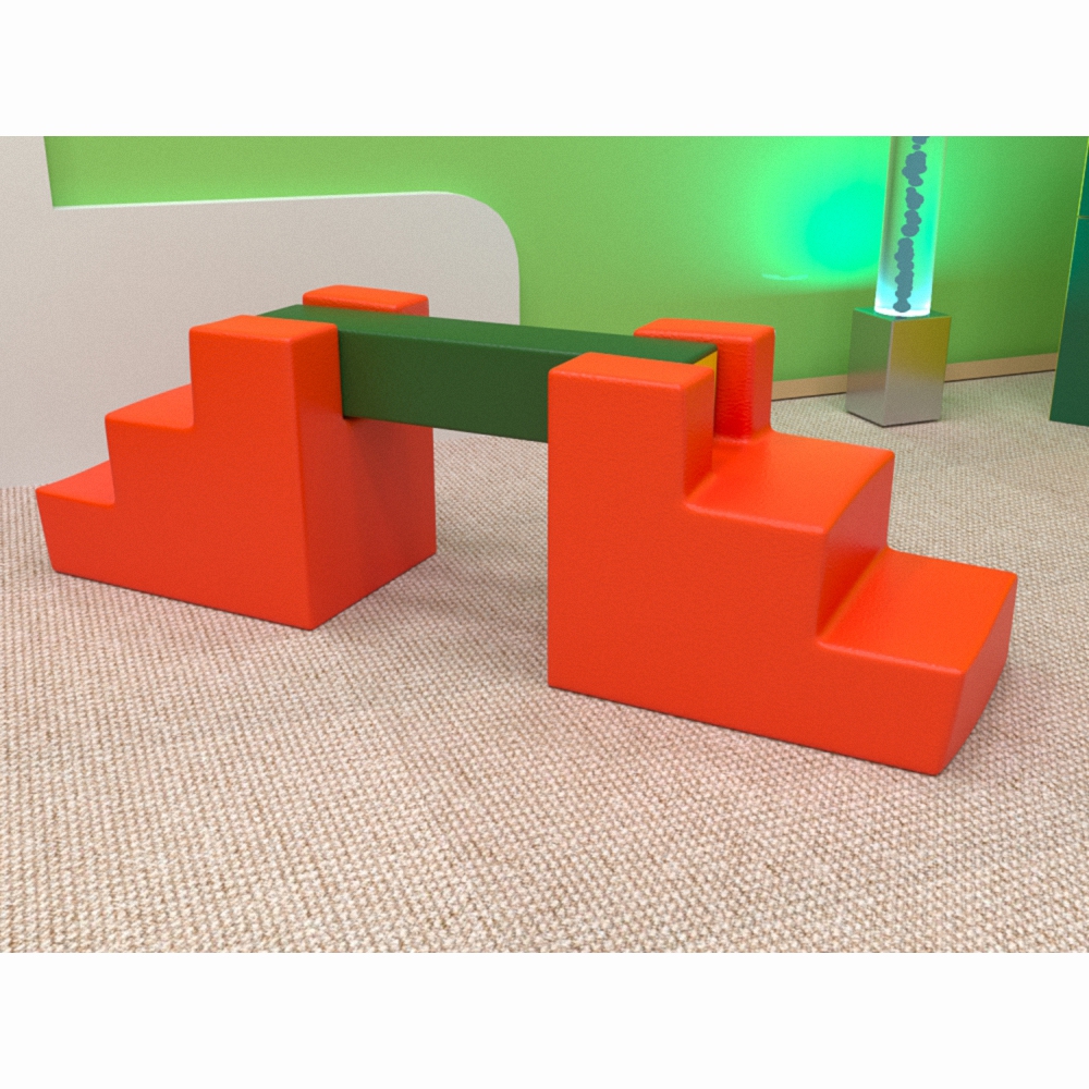 Игровой комплекс этой модели относится к разновидности наборов для выполнения комплексов спортивных упражнений и общеукрепляющих занятий лечебной физкультурой. Представлен модулями различной формы и расцветки (возможно изготовление в цветовой гамме по пожеланиям заказчика), ступеньки в составе набора расширяют его функциональность и одновременно делают более удобным в эксплуатации. Мягкий наполнитель обеспечивает безопасность даже во время активной эксплуатации, а благодаря его особой структуре - ещё и обладает устойчивостью к разрывам и повреждениям. Покрытие из искусственной кожи позволяет осуществлять за спортивным модулем самый минимальный уход. Благодаря систематическим занятиям со спортивным комплексом «Спорт с брусом и ступенями» ребёнок может стать ловче и сильнее, укрепить мышцы опорно-двигательного аппарата, укрепить вестибулярный аппарат и развить равновесие, избавиться от излишка накопленной энергии в весёлой игровой форме.