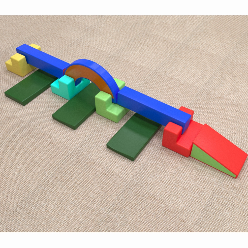 Представленный набор мягких модулей является улучшенной и более функциональной версией спортивного комплекса «Полоса препятствий-1» из ассортимента нашего каталога – ведь она длиннее, и имеет в составе большее количество мягких модулей. Предназначен для обустройства спортивных залов начальных школ и детских садиков, детских спортивных секций, ресурсных и инклюзивных учреждений, реабилитационных центров, а также в качестве игрового модуля-конструктора – в детских игровых и развлекательных пространствах в ТРЦ. Представляет из себя набор разноцветных модулей разнообразных форм (горка, полукруг, брус, подставки сложной формы, маты прямоугольные), которые составляются нужным образом - получается единая «полоса препятствий». Плюсом является бескаркасная конструкция модуля (это помогает избежать травмирования ребёнка), как и мягкий, упругий наполнитель, который также устойчив к разрывам и повреждениям. Покрытие легко моется.