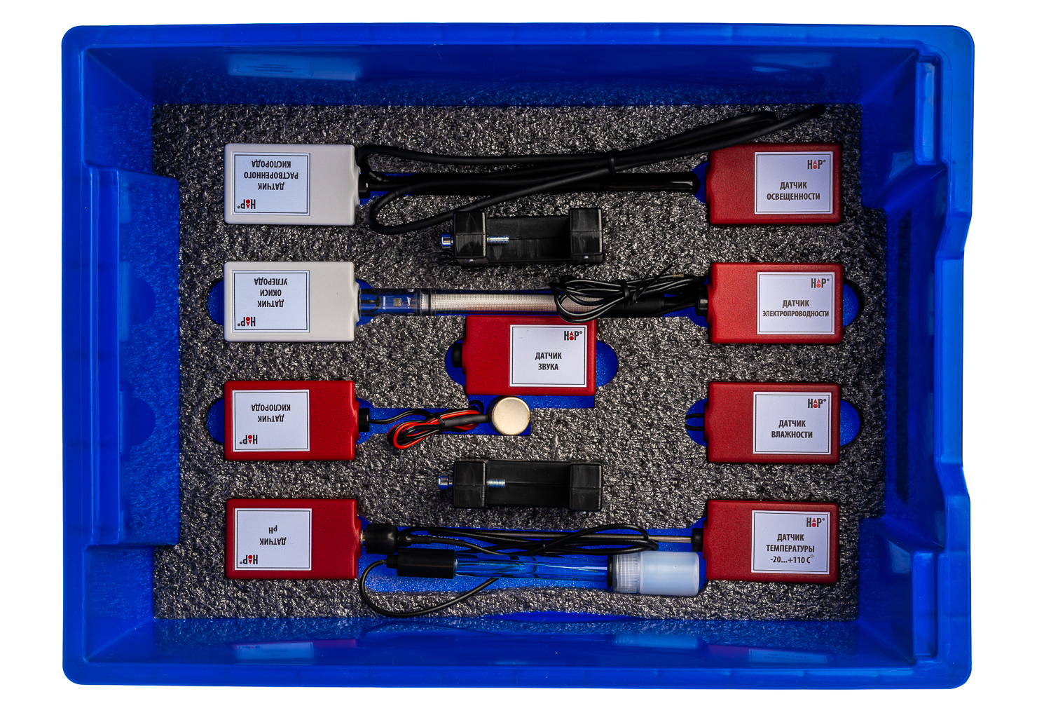 Цифровая лаборатория укомплектована в пластиковую систему хранения, которая закрывается прозрачной пластиковой крышкой на защелках для обеспечения наблюдения за содержимым. Комплект оборудования и датчики в контейнере располагаются на ложементах.