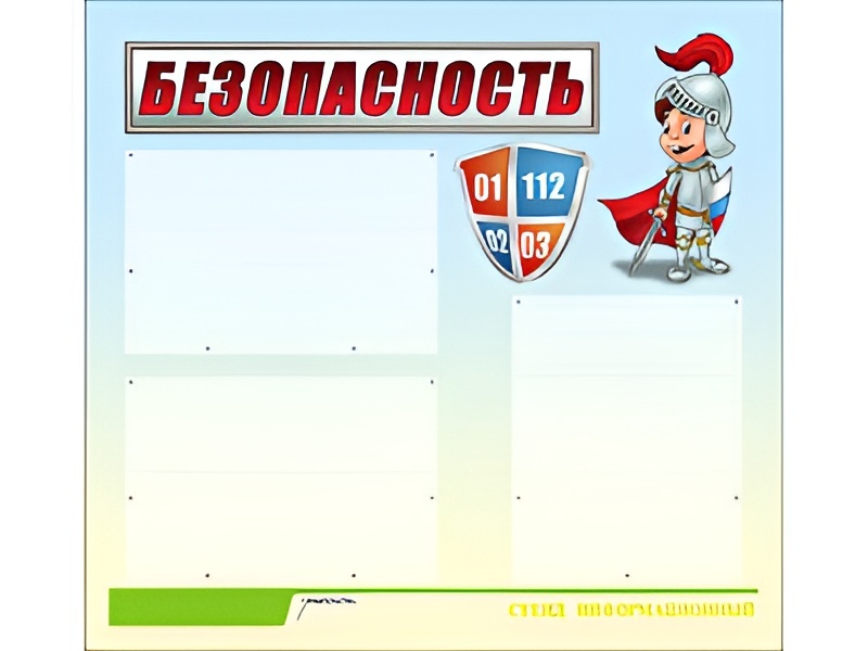 Главная Каталог Оборудование для детского сада Информационные стенды Стенд информационный для ДОУ "Безопасность" (75х70см, 3 карм., алюм. проф.)