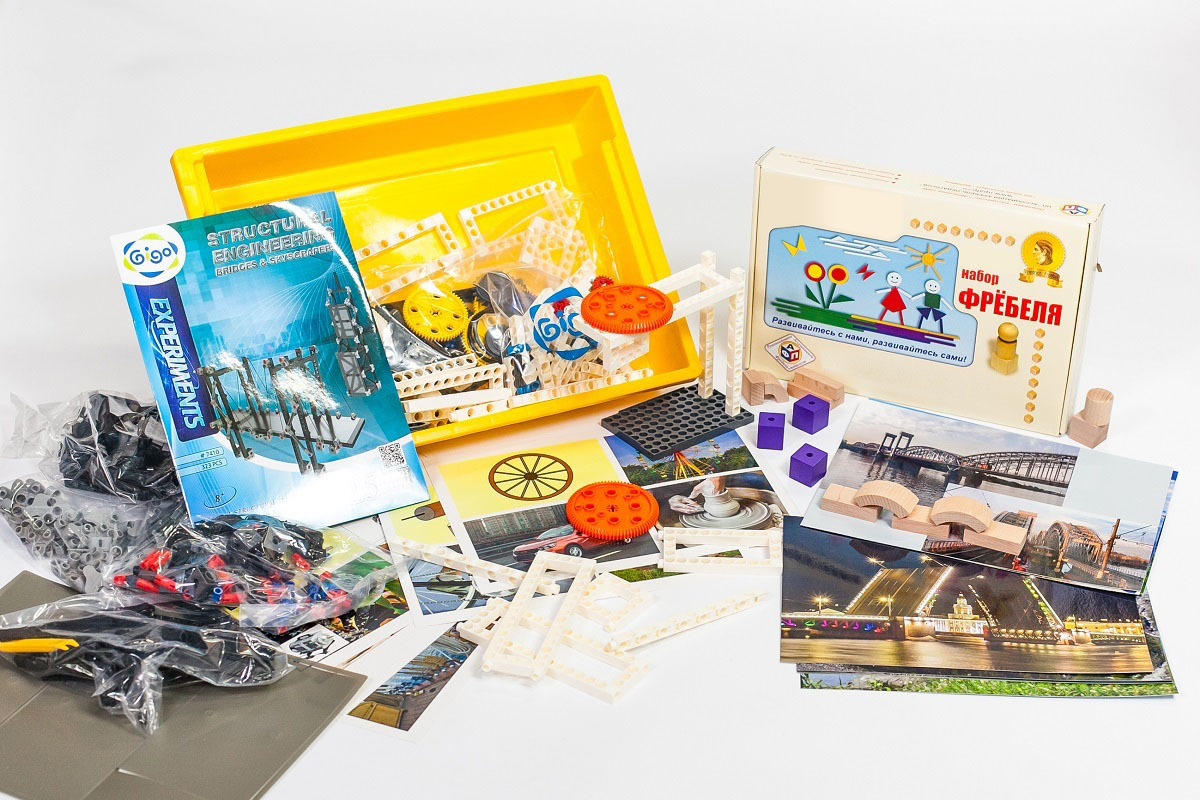 • Комплект № 3 «Мосты». В набор входят элементы для конструирования из различных материалов: дерево, пластик, бумага, комплект карточек, видео-контент, журнал проекта.