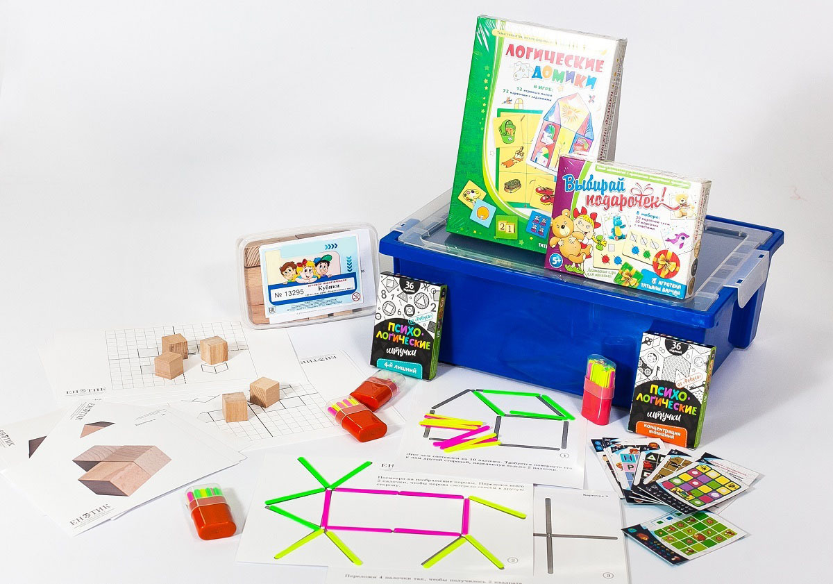 • Комплект № 2 «Логика». В состав комплекта входят настольные игры, направленные на развитие логического мышления детей дошкольного возраста, карточки с заданиями, «Обучающий планшет ДО» или аналог, комплект карточек с заданиями по теме «Части и целое», «Логика» (кубики с набором заданий), видео-контент, журнал проекта.