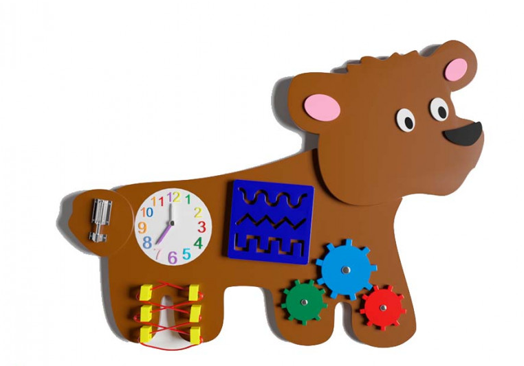 Бизиборд подойдет для детей разных возрастов. Благодаря развивающей игрушке ребенок сможет познакомиться с миром животных и любимым персонажем из сказок. Доска не оставляет заусенцы на коже малыша и не имеет острых углов. Многофункциональную доску можно купить для дома, для детских центров, дошкольных учреждений, ресторанов и клиник. Играть в Бизиборд в виде медведя можно вместе с ребёнком, а можно наблюдать за процессом.