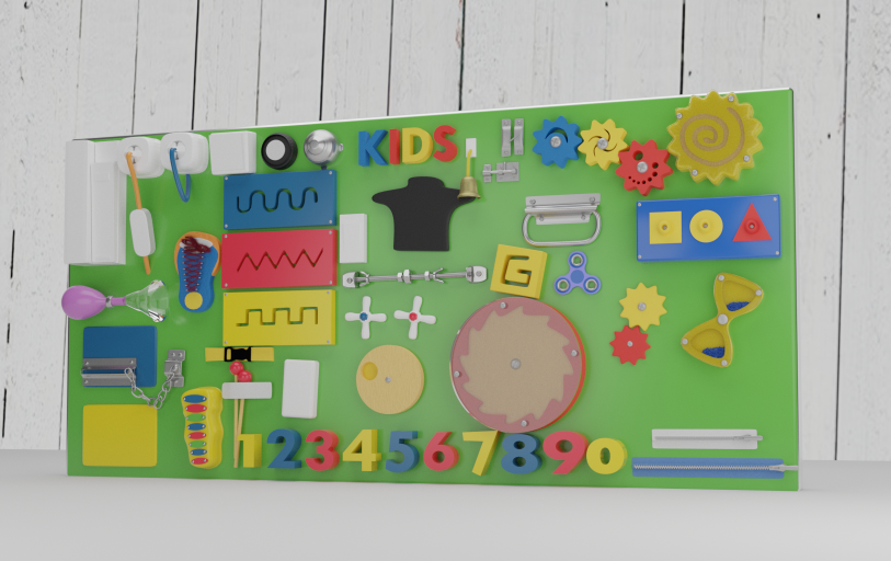 Бизиборд выполнен из фанеры высшего качества, что позволяет наслаждаться безопасной игрой детям с раннего возраста.