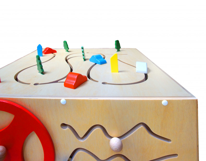Бизикуб - это развивающее оборудование, заменяющее 5 отдельных бизибордов и предназначенное для детей от 3-х лет. Изготовленный из натуральной древесины, он компактный и мобильный, позволяя ребенку развиваться и играть в любом месте. Шестеренки, шнуровка, часы, крутящиеся элементы, цифры, тактильные ячейки, руль, счеты, одежные застежки и тактильные лабиринты - всем этим оснащен наш Бизикуб №1, и все это помогает развивать моторику и логическое мышление ребенка.