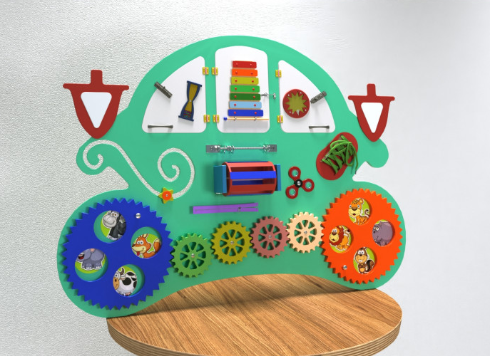 Настенная панель в виде кареты – яркий, красочный игровой элемент с дидактической ценностью. Многофункциональна, несмотря на компактные размеры. Представляет из себя фигурную деревянную доску в форме кареты, оснащённую разнообразными элементами для приобретения детьми дошкольного возраста полезных навыков в формате игры.