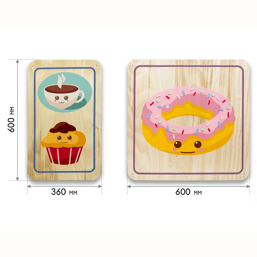 Дополнительные модули бывают однотонные и с тематическими иллюстрациями, подходящими под тематику дидактических панелей. Разнообразие размеров способствует декорированию стен различной конфигурации и масштабов. Параметры варьируются от совсем маленьких модулей 300х300 мм до крупных размеров 600х600 мм.