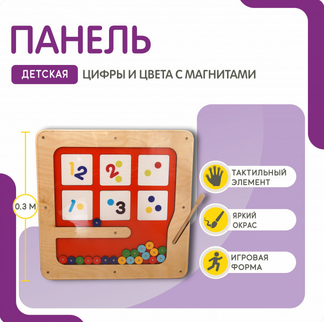 Не упустите возможность приобрести качественную и полезную игру для своего ребенка - детскую панель от Инклюзив РУС. С ее помощью вы поможете ребенку от 3-х лет развить математические навыки, а также научиться различать цвета. А еще представленная игра поможет ребенку развить мелкую моторику и координацию движений, а также логику, внимательность и усидчивость. Игра выполнена из натурального дерева и безопасных материалов, что делает ее безопасной для детей, а игровые элементы - разноцветные кружочки из дерева с металлическим центром. В комплекте есть магнитная ручка, которая помогает перемещать элементы по игровому полю. Подойдет для детских садов и школ, для домашнего использования, для развивающих центров и игровых комнат.