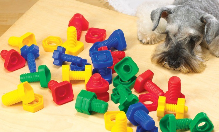 Образовательный набор "Гайки и болтики" способствует изучению цвета и геометрических форм (фигур), развивает мелкую моторику и навык сортировки.