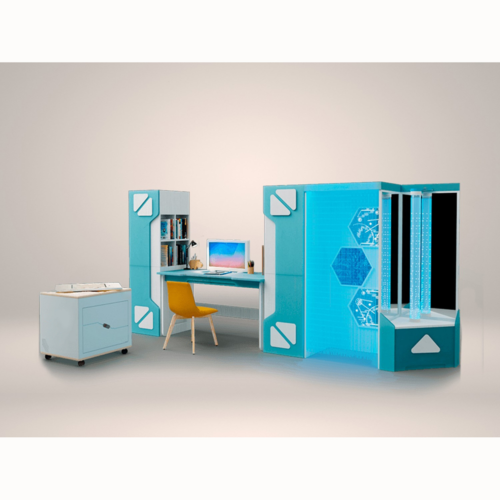 Комплекс включает встроенную световую песочницу, место под конструирование с мягким магнитным конструктором «МАККИ 37», место психологической разгрузки с фиброоптическим душем и воздушно-пузырьковой колонной, встроенную музыкальную систему и многое другое.
