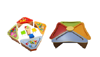 • Данный тактильный комплекс состоит из 4-х независимых столов со специальными углублениями для работы с песком.