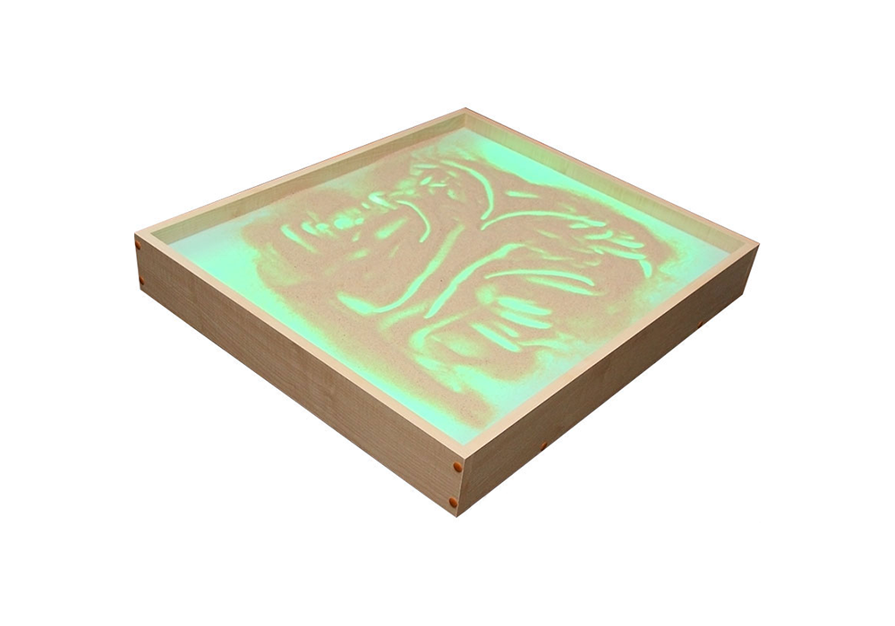 Сам планшет представляет из себя ящик для рисования песком с днищем из безопасного прозрачного пластика. В ряде моделей имеется кармашек для песка. Снизу доска для рисования песком подсвечивается светодиодными матрицами для того, чтобы рисунок было лучше видно. Изображение получается более живым и объемным. Цвета подсветки можно выбирать при помощи выносного радиопульта или при помощи кнопок на корпусе стола. Например, синий цвет подсветки можно использовать для подсветки рисунка морских жителей или зеленый цвет – для изображения леса. Существуют различные системы управления выбором цвета подсветки с возможностью выбора не только чистых цветов, но и различных оттенков. Во многих моделях установлены электронные устройства, переключающие цвета подсветки автоматически, по встроенным программам. В светозвуковых столах смена цветов происходит автоматически в зависимости от внешних звуков (музыка или просто хлопки в ладоши, голос и т.п.)