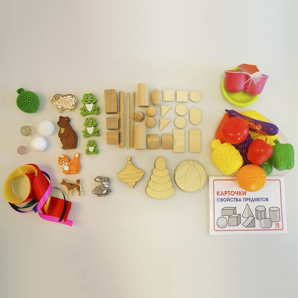 Игровой набор «Свойства предметов» предназначен для развития осязательного восприятия, умений дифференцировать величину (ширина, глубина, объем, высота).