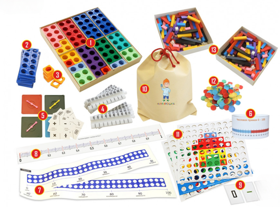 Набор дополнительных рабочих материалов для детей 9-11 лет Нумирошка –  образовательная система, которая способствует развитию умственных способностей детей. В системе используется комплекс наглядно-практического материала, с которым работать ребёнку будет достаточно легко и понятно. С помощью этой программы дети познакомятся с такими понятиями, как числа, арифметические операции над числами и пр. Нумирошку также успешно применяют при обучении детей с интеллектуальными отклонениями и физическими нарушениями. Работая с набором в группе, дети будут быстрее воспринимать информацию и обучаться новым математическим навыкам. Система Нумирошки устроена так, что её без труда можно совмещать с основной программой обучения.