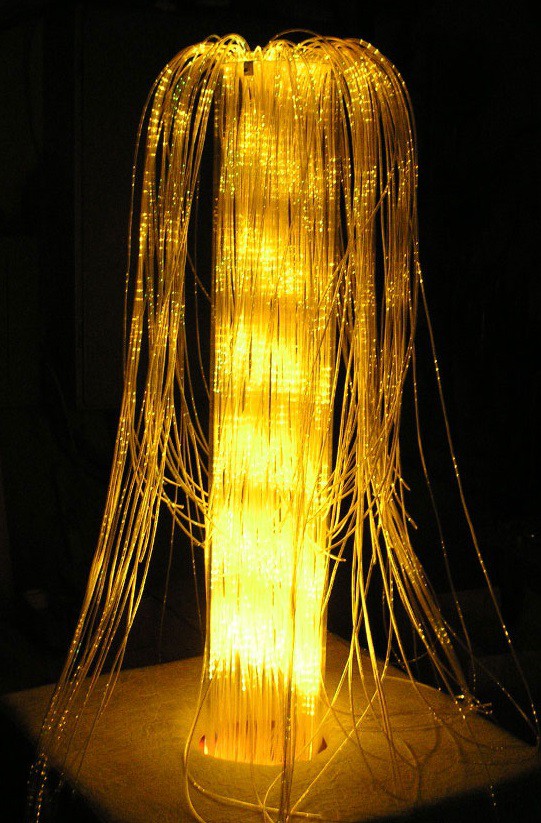 Завораживающий каскад фибероптических волокон с боковым свечением, струящихся вдоль прозрачной трубы высотой 1 м. Мягкая тумба. Идеален для центрального светового модуля сенсорной комнаты.