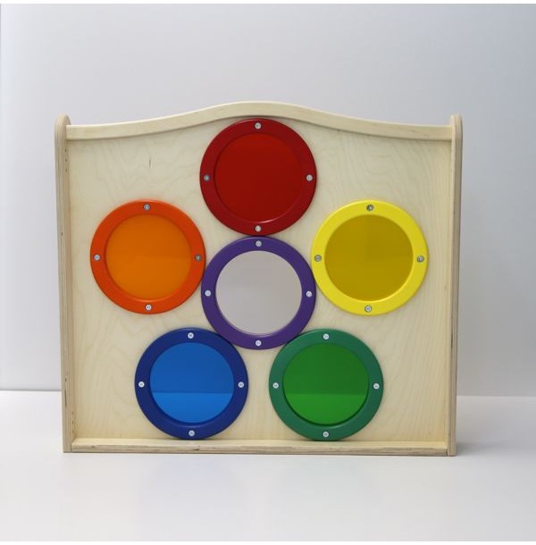 Панель для игровых зон "Калейдоскоп" выполнена из высококачественной березовой фанеры. В фасад панели вмонтированы 6 акриловых стекол разных цветов. Панель станет украшением любой игровой зоны, а также отличным дидактическим материалом для изучения цветов.