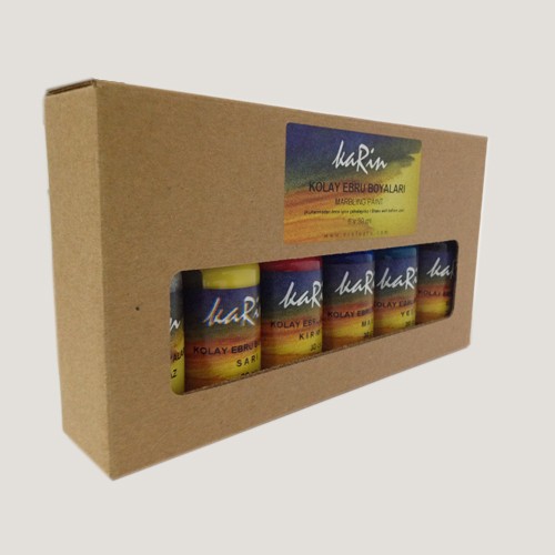 Готовые краски для Эбру - комплект из 6 цветов: коричневый, желтый, красный, синий, зеленый, черный.