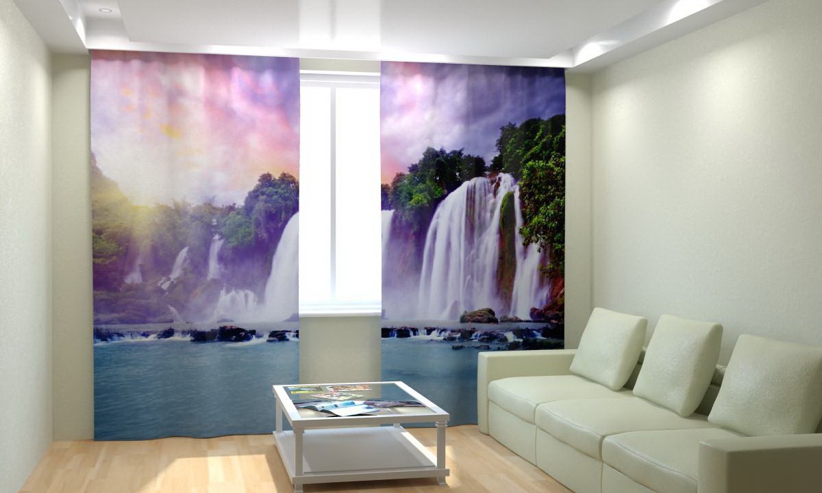 Комплект светонепроницаемых штор "Закат у водопада" - fgospostavki.ru - Тихорецк
