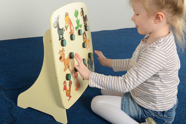 Звуковая панель «Угадай звук» воспроизводит звуки различных животных. Нажав на кнопку под красочным изображением животного, ребенок услышит выбранный звук. С помощью панели “Угадай звук” дети смогут в игровой форме познакомиться с окружающим миром. Это и прекрасное средство для развития воображения, и звуковая стимуляция.