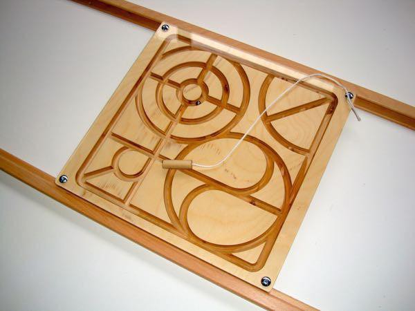 Основание панели выполнено из березовой фанеры толщиной. Между основанием и органическим стеклом помещен металлический шарик диаметром 10 мм. Перемещать шарик можно как с помощью деревянной палочки, на конце которой закреплен магнит, так и с помощью наклона самой панели.