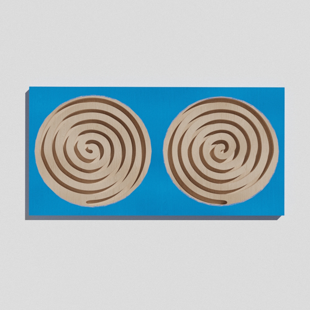 Малышу необходимо взять два бегунка и установить в лабиринте. Сначала двигать кружок по маршрут правой, затем только левой рукой, а после двигаться по траектории лабиринта обоими одновременно по часовой стрелке, а потом против. Упражнение помогает сформировать одновременную работу рук, глаз и обоих полушарий.