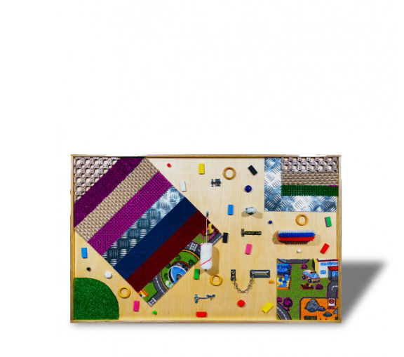 Тактильная панель с декоративными элементами на тему ощущений - это познавательная игра для детей разных возрастов. На панели находится разных по структуре и ощущениям кусочки поверхности. Предметы разнообразных форм, замочек на цепочки, защелка, шпингалет. А также крутящиеся колеса, колючая щетка и мягкий валик. Тактильная панель сделана из качественных материалов, без острых углов и, благодаря производителю, не оставляет зацепок в пальчиках вашего ребенка. Ребенка обязательно привлечет внимание форма и множество различных полезных зон, которые не только принесут радость, но и помогут в комплексном развитии малыша.
