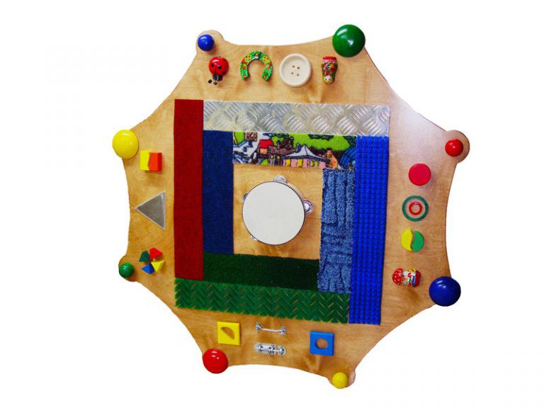 Вращая диск, перебирая пальцами по различным текстурам и предметам на поверхности диска, ребенок открывает для себя мир новых ощущений.