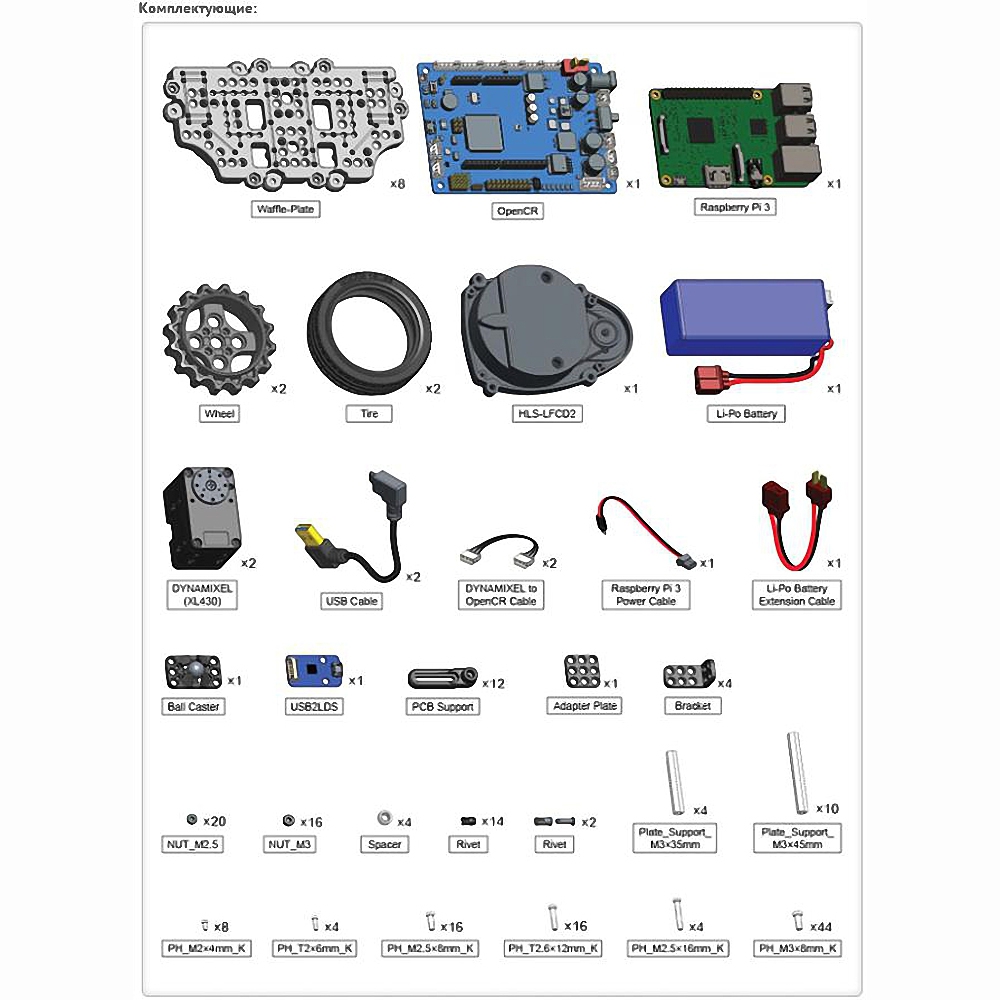 Мобильный робот TURTLEBOT3 Burger – компактный, модульный, программируемый мобильный робот нового поколения. Изучите операционную систему ROS и создайте интересные приложения для обучения, исследований и новых разработок.
