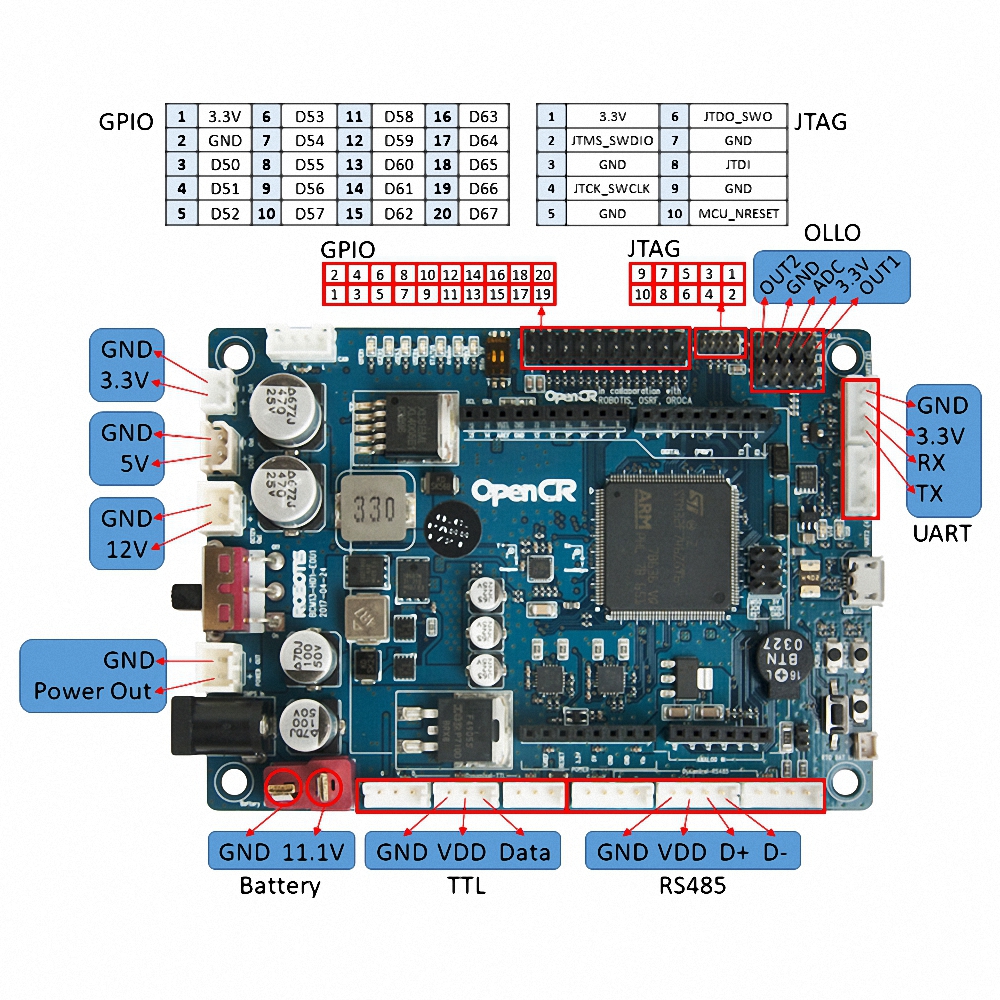 Модуль управления OpenCR1.0 (открытого исходного кода модуля управления для ROS) - программируемый робототехнический контроллер с открытым исходным кодом со встроенным мощным MCU от ARM Cortex M-7.