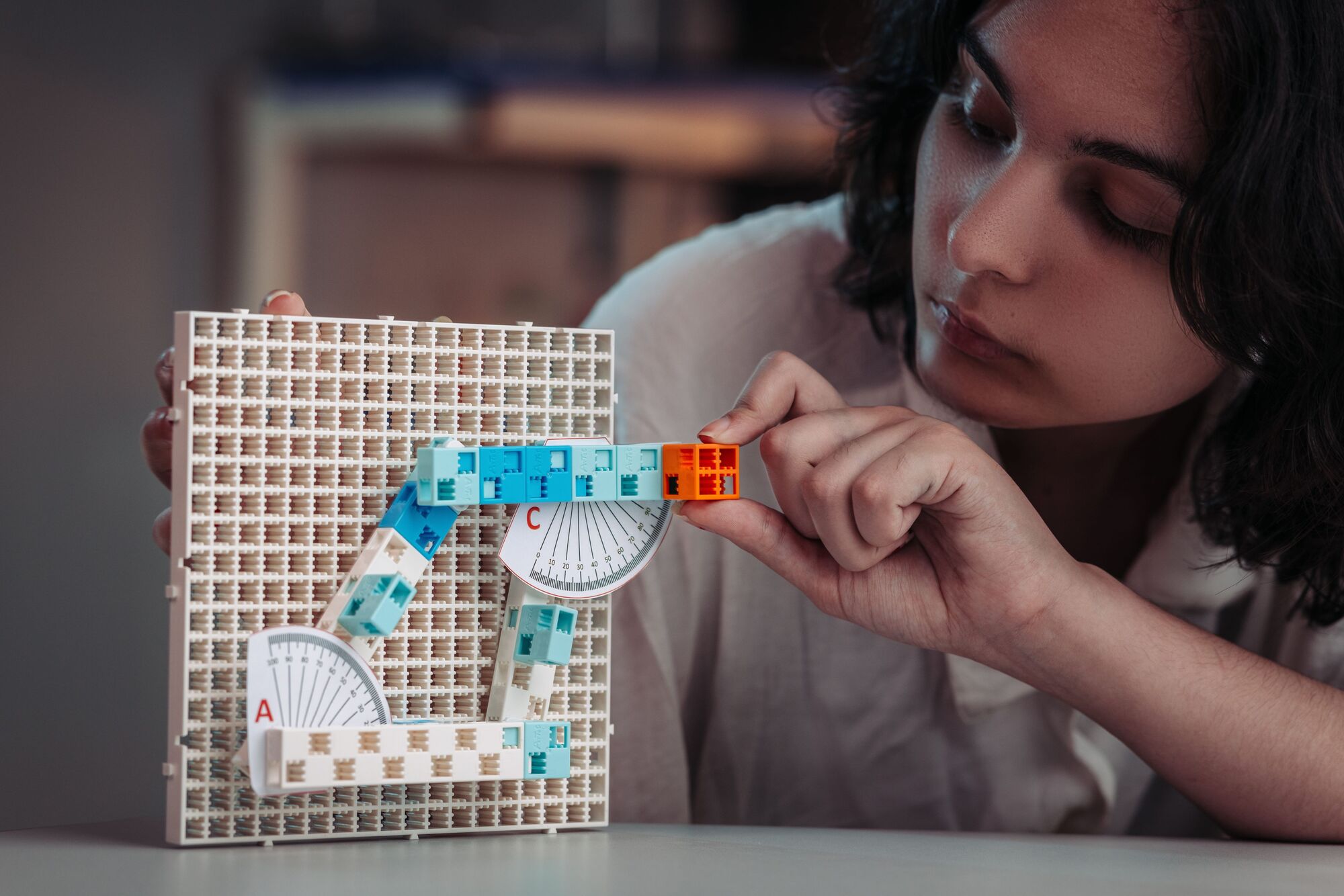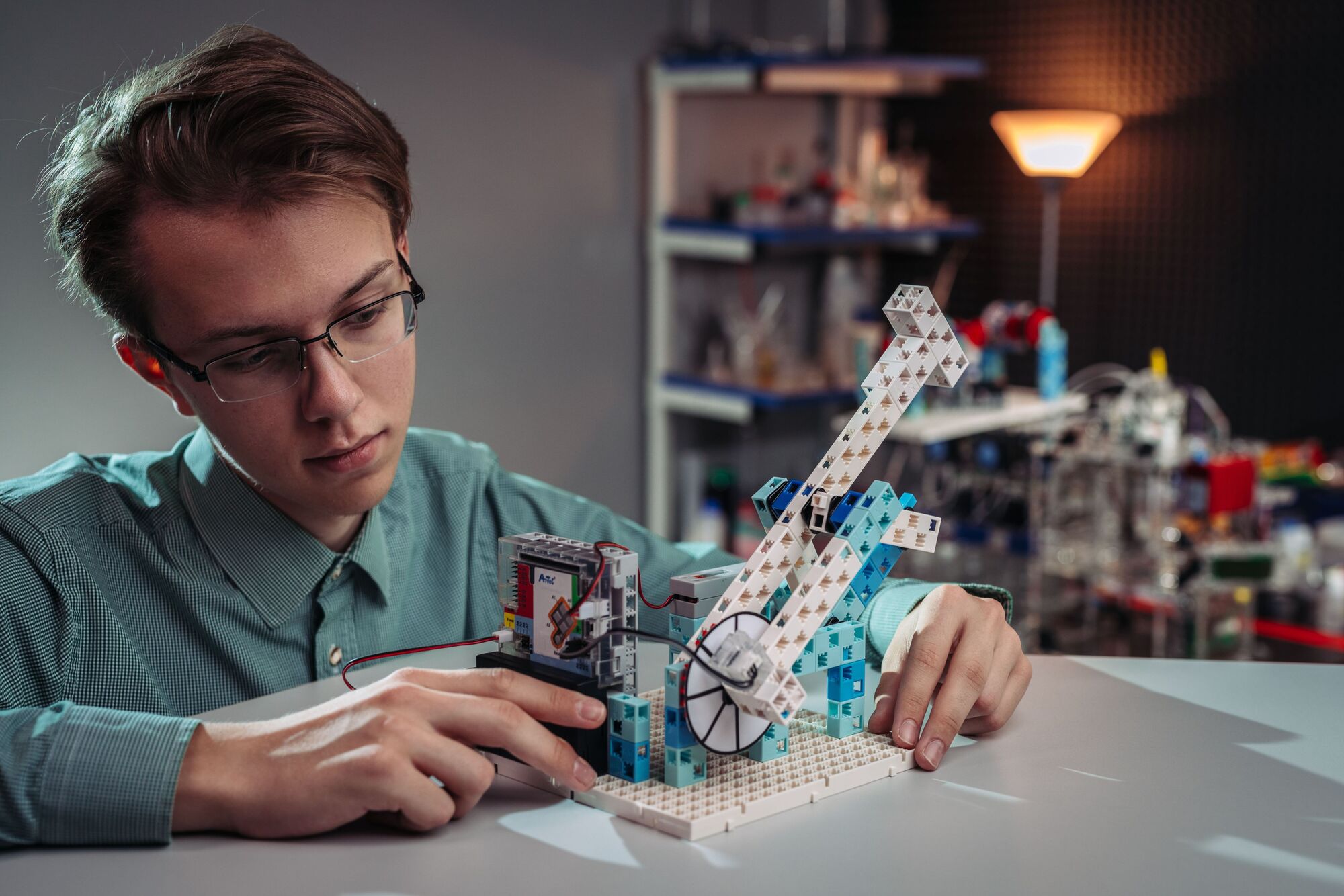 — Сборке действующих прототипов распространённых механизмов из универсальных, а не уникально специализированных деталей