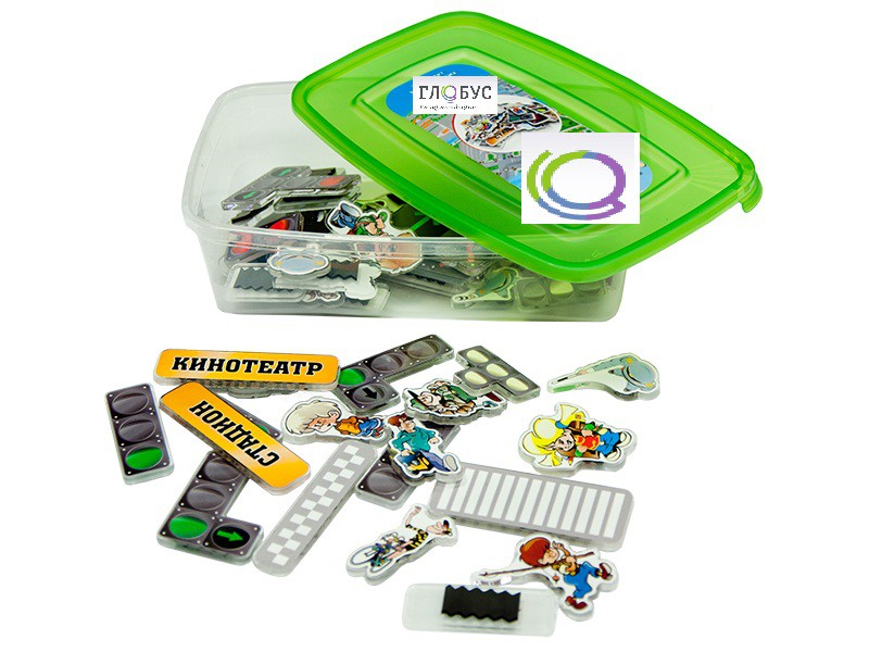 Комплект тематических магнитов представляет собой набор из магнитов в виде дорожных знаков и объектов городской социальной инфраструктуры.