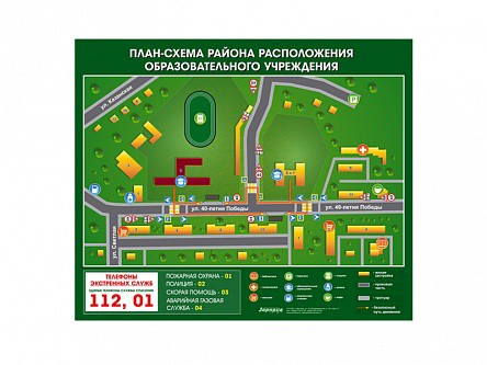 Магнитно-маркерное панно представляет собой настенную панель, на которой размещена план-схема района с местом расположения образовательного учреждения, прилегающих дорог, дорожных знаков и ближайших домов (для каждого стенда разрабатывается индивидуальный дизайн схемы).