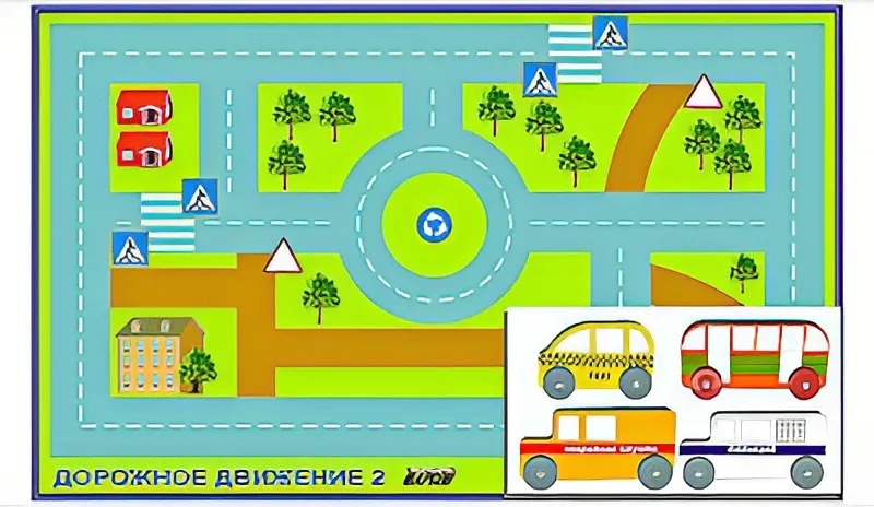 Главная Каталог Правила дорожного движения Игры по ПДД Игровой коврик "Дорожное движение - 2" с набором транспортных средств