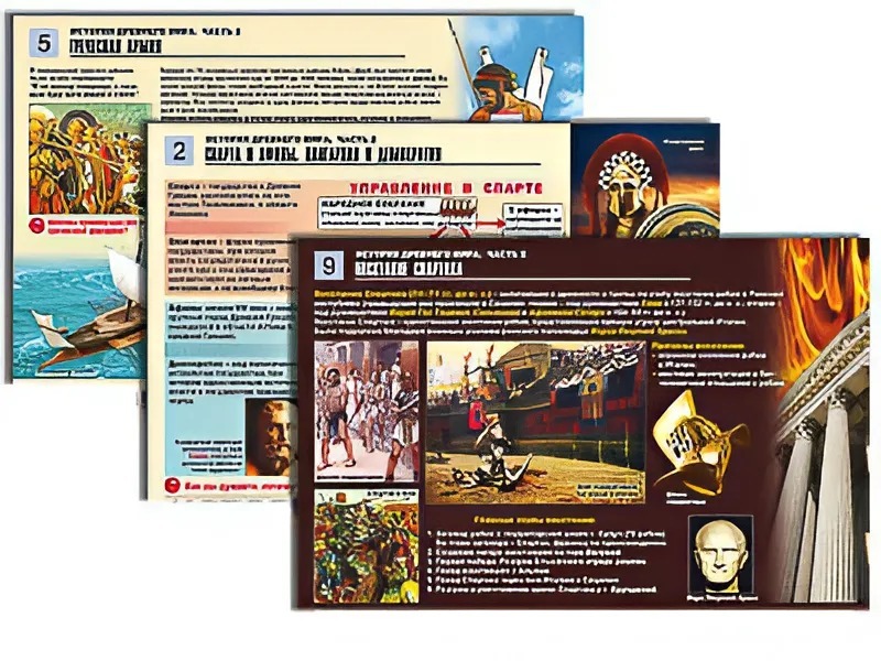 Комплект таблиц по истории "История древнего мира. Часть 2" раздаточные (цветные, ламинированные, А4, 12 штук)