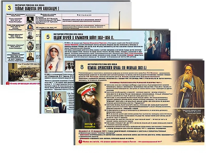 Комплект таблиц по истории "История России XIX в." раздаточные (цветные, ламинированные, А4, 10 штук) - fgospostavki.ru - Тихорецк