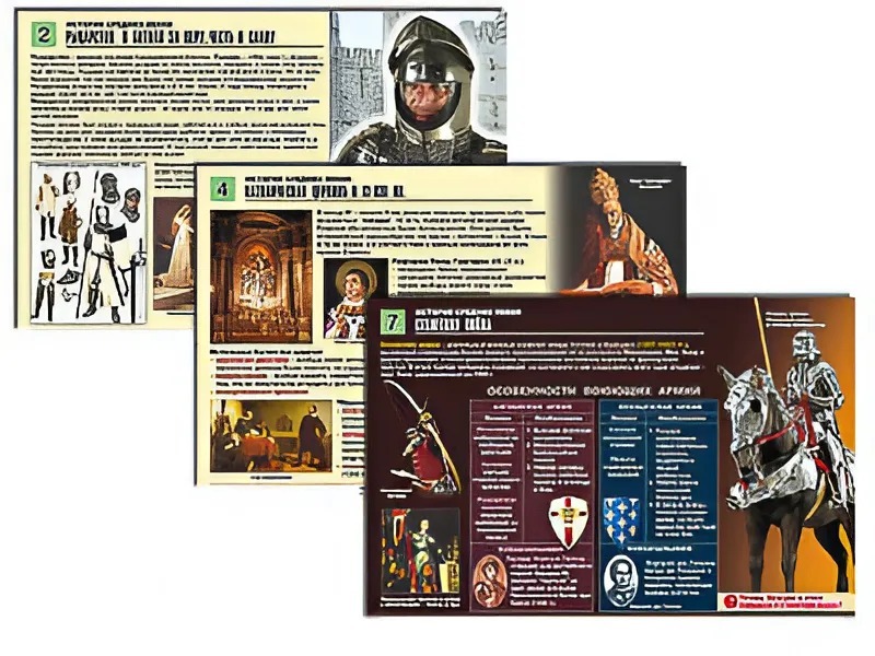 Комплект таблиц по истории "История средних веков" раздаточные (цветные, ламинированные, А4, 8 штук)