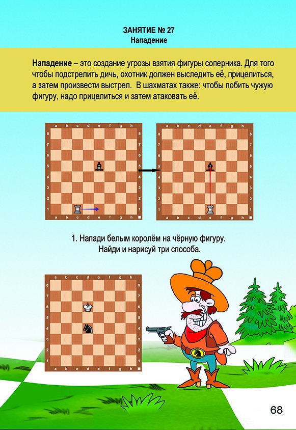 Ребёнок может работать с учебным пособием даже без шахмат, рисуя ответы цвет- ными карандашами прямо в книге. Наш учебник поможет увлечь шахматами ребёнка и даст ему возможность сделать первый шаг во взрослую жизнь!