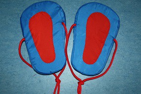 Ходунки "Следы" используется для индивидуальных и коллективных спортивных игр и занятий. Игра развивает координацию движений и ловкость.