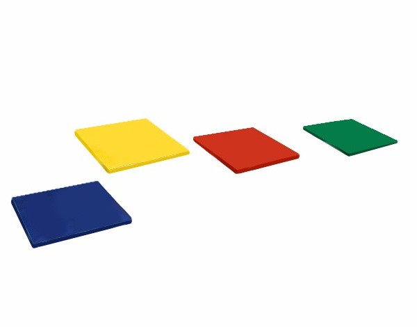 В комплект входят четыре "островка": красный, желтый, зеленый и синий. Островки соединены между собой шнуром (расстояние регулируется в зависимости от выполняемых упражнений), с нижней стороны имеется липучка для фиксации на ковролине.