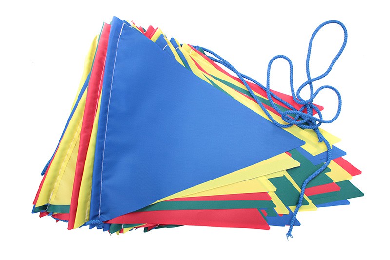 Флажки на ленте фиксированы. Ряд расположенных на ленте или шнуре треугольных флажков. Это доступный и недорогой способ оформить помещения в преддверии праздников и по случаю проведению спортивных соревнований.