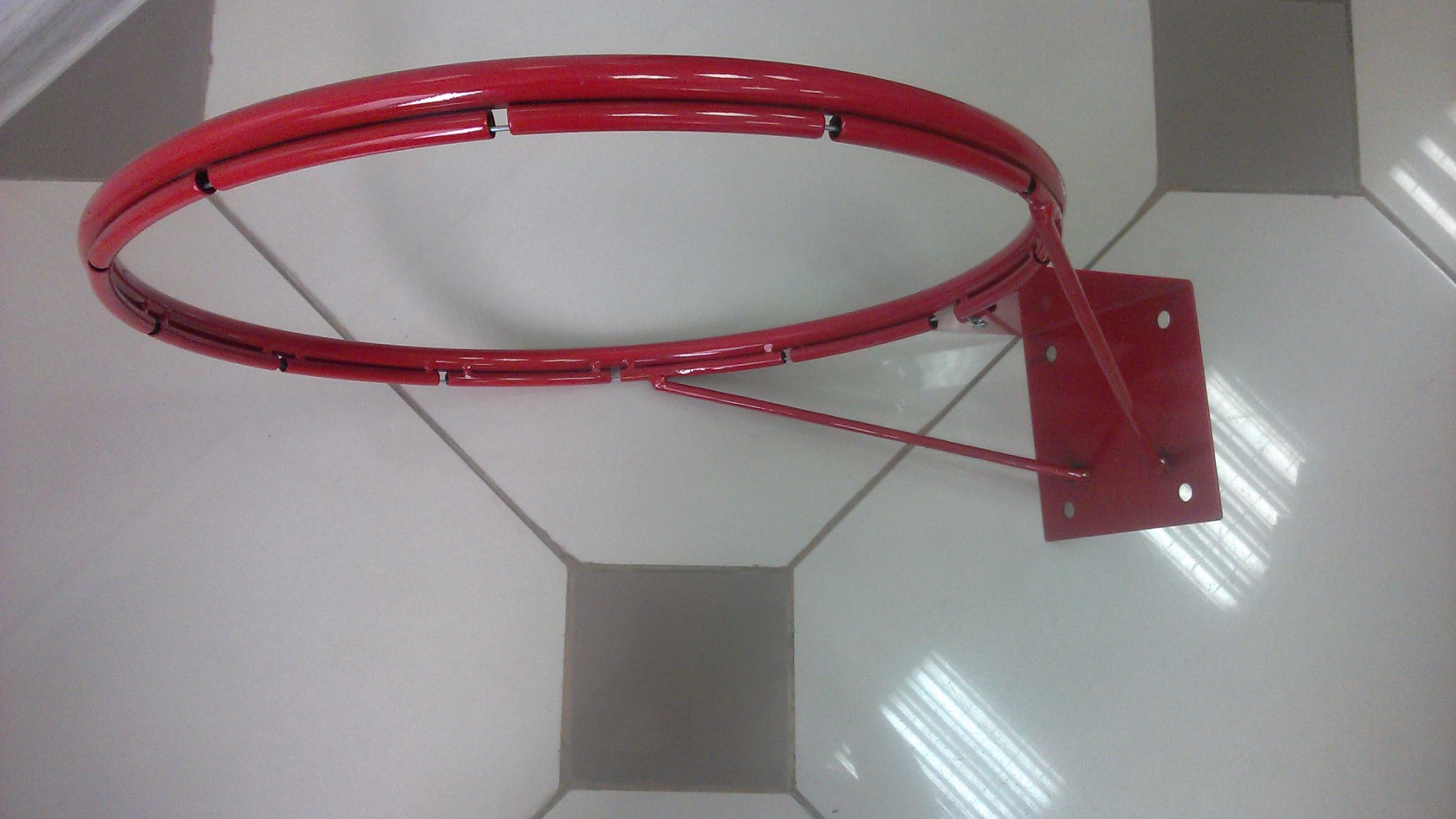 Кольцо баскетбольное представляет собой сварную конструкцию, состоящую из: кольца и крепежной пластины 150х147мм с 4м отверстиями, усиленной подпорками.