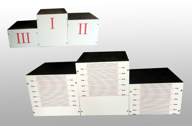 Комплект представляет собой три тумбы, которые можно использовать для сдачи наклонов вперед с прямыми ногами, для этого на тумбах нанесена шкала. Также тумбы можно применять в качестве пьедестала победителя, на братной стороне тумб нанесено место победителя соревнований.