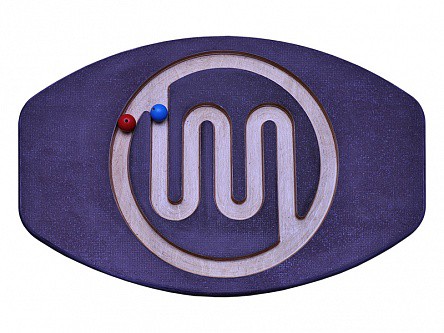 Балансировочная доска-лабиринт представляет собой планшет в форме круга, снабженный эргономичными подножками для управления движением игрового шарика в процессе балансирования и полусферической опорой. Игровое поле панели снабжено сетью бороздок прямоугольного профиля в форме синусоидального лабиринта.